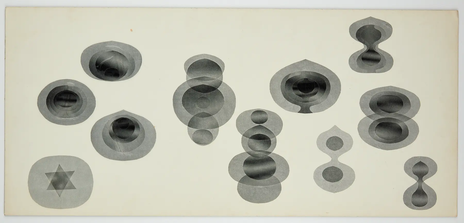Untitled (ZP.18F, Eleven Looped-Wire Sculptural Forms), c. 1950s, Mid-Late screentone on matboard