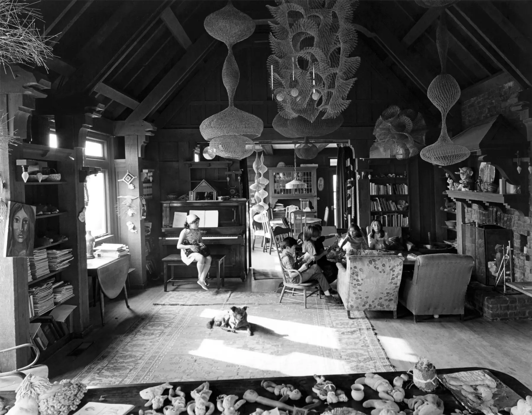 Bishop notes that Asawa’s house was the ‘epicentre’ of her creative life: she worked from a home studio but only used that space for ‘messy things.’ She preferred to be in the living room, around people, including her children. ‘She would hang sculptures in the door jamb between the living room and the kitchen,’ says Bishop, ‘and work on them either standing or in the window seat.’